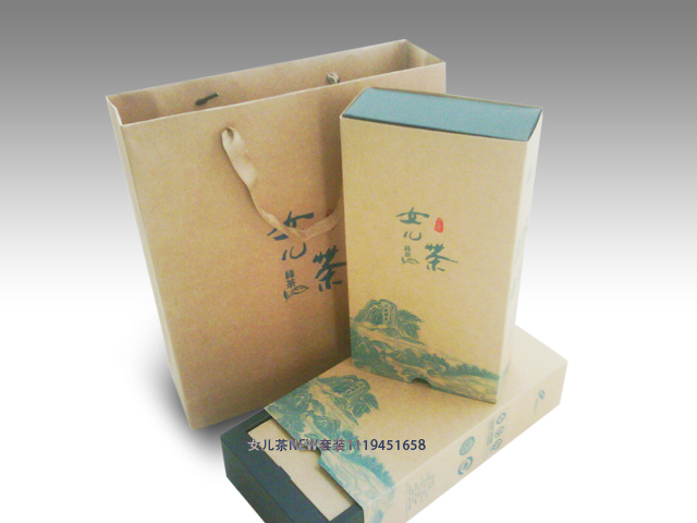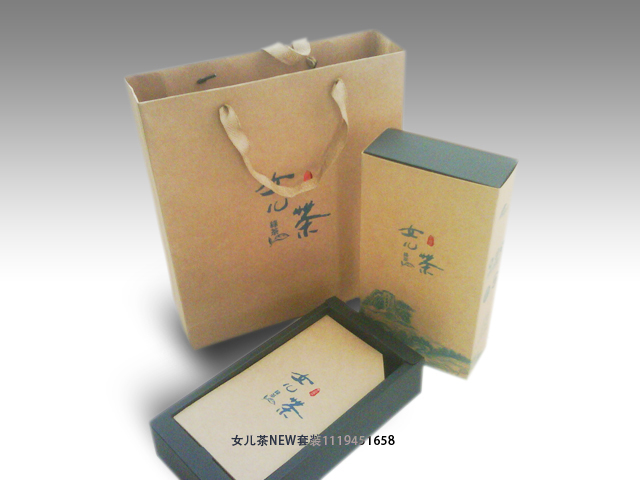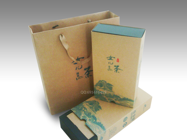 230g进口牛皮纸,一个提袋内装两盒茶叶。