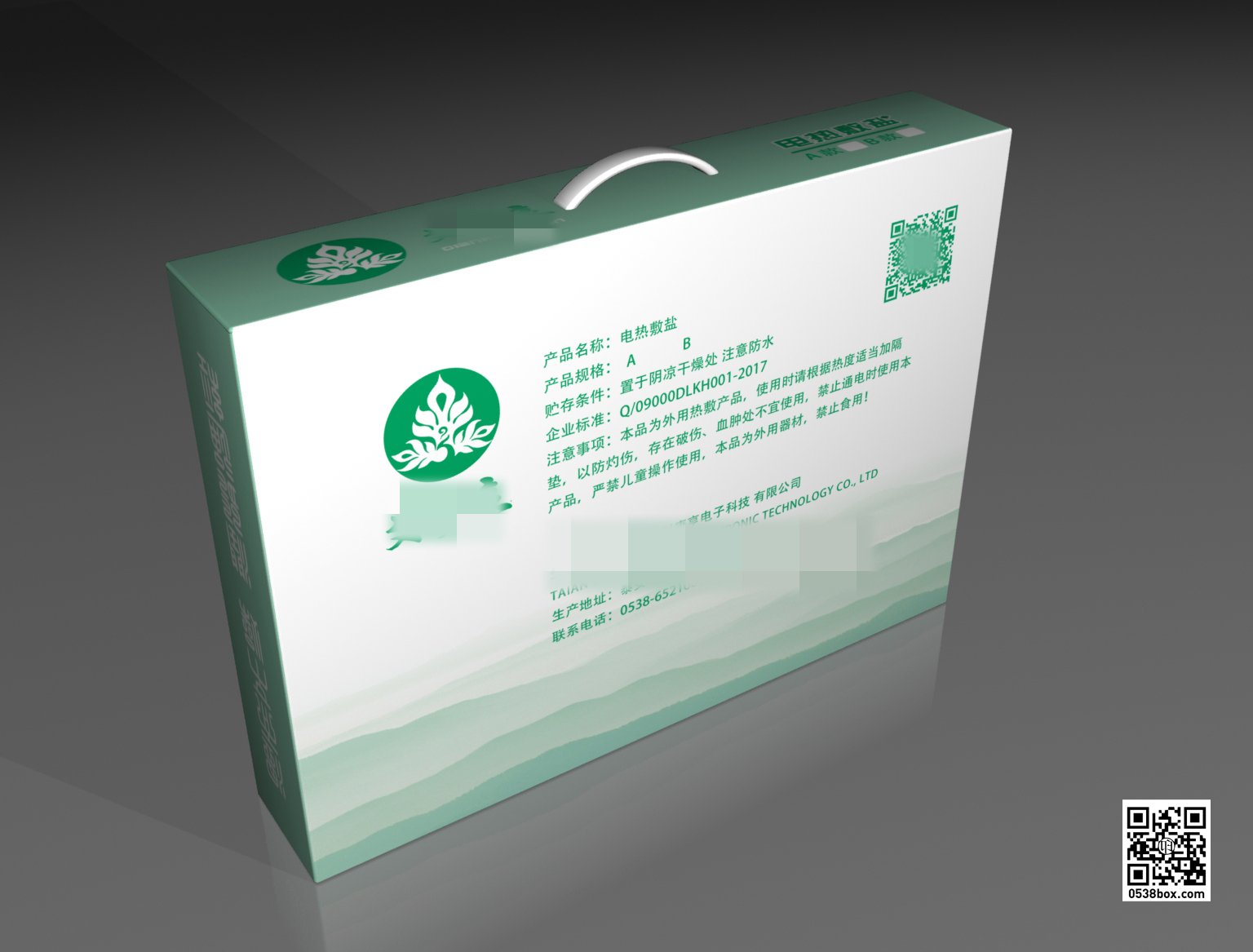 泰安电热敷盐包装盒(飞机盒)制造厂家:泰安恒兴包装高档礼品盒设计制作企业塑料提手全身覆膜,300克优质白板,高强度E型瓦楞制作。泰安恒兴从事多年包装制作,价格公道,品质优良,信誉可靠,欢迎来稿报价。